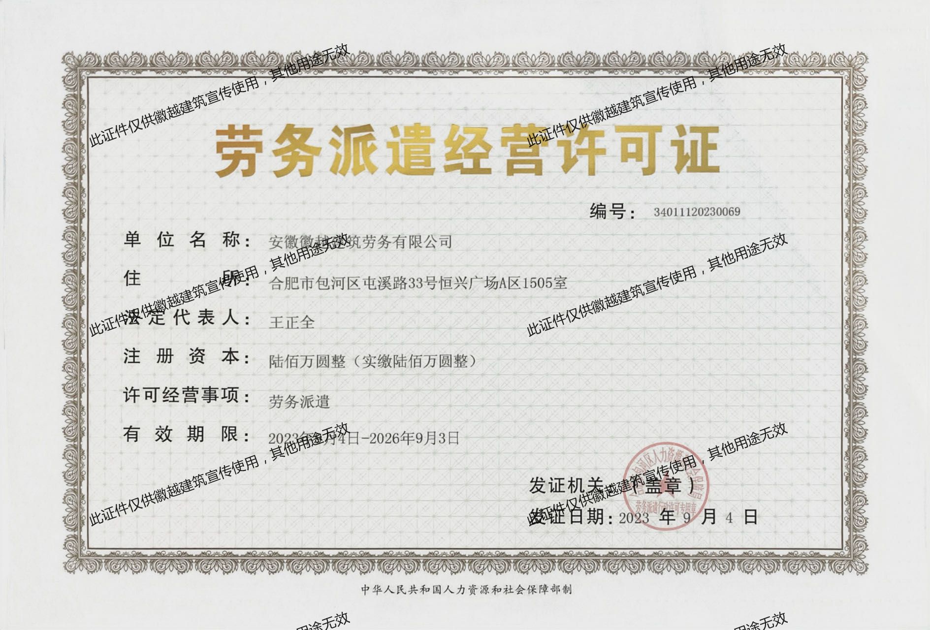 徽越公司自2008年中建總公司及多家世界500強企業(yè)授權招工資格以來,在同行業(yè)知名度信譽 度較高。徽越公司是安徽省一家經(jīng)過合肥市工商行政管理局(安徽省工商行政管理局備案審核)、合肥市勞動和社會保障局及合肥市建設委員會(安徽省建設廳資質(zhì)審批)審核批準成立的正規(guī)合法的且具有豐富建筑勞務輸出和項目施工管理經(jīng)驗的信譽良好的勞務派遣和勞務分包...>>查看詳情